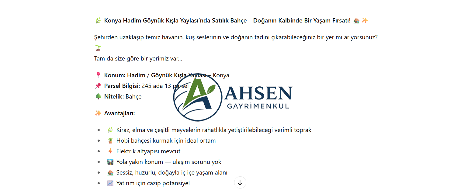 Konya Hadim Göynük Kışla Yaylası’nda Satılık Bahçe – Doğanın Kalbinde Bir Yaşam Fırsatı!