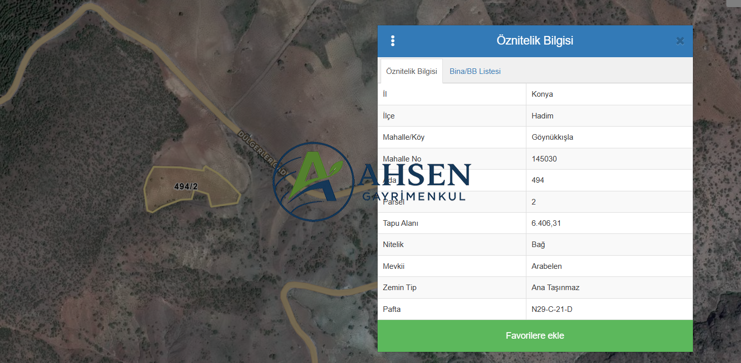 Konya Hadim Gönükışla’da 6.406 m² Bağ Satılık! ✨